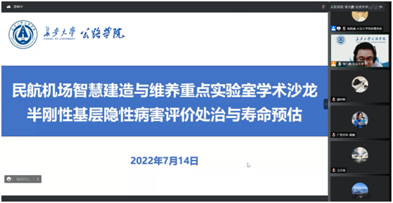 2022年7月14日下午,民航机场智能建造与维养重点实验室成功举办“半刚性基层隐性病害评价处治与寿命预估”线上学术沙龙。西北民航机场建设集团杨凯、圭目机器人有限公司钟新然、广西交通科学研究院王浩、伦理影片