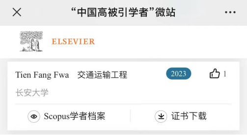 Fwa Tien Fang教授、汪海年教授、赖金星教授上榜。