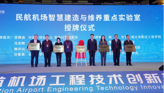 牵头组建的“民航机场智慧建造与维养重点实验室”揭牌,为共建单位代表授牌。