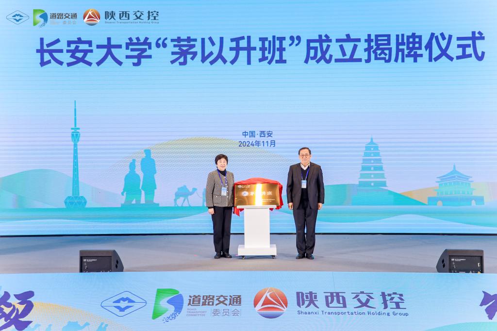 沙爱民与茅玉麟理事长共同为“茅以升班”揭牌