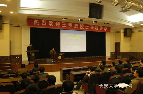 会见结束后,王梦恕院士为我校岩土与隧道工程学科的师生作了题为“复杂山区长大隧道建设的理念与原则”的专题学术报告。王院士结合自己多年来的实践,详尽的向大家介绍了在复杂山区如何进行长大隧道建设和科学管理,并就提高隧道的结构寿命及工程建设与人文科学的有机融合,作了深入的介绍。王院士严谨求实的治学态度和精彩报告感染了与会师生,受到大家热烈的欢迎。