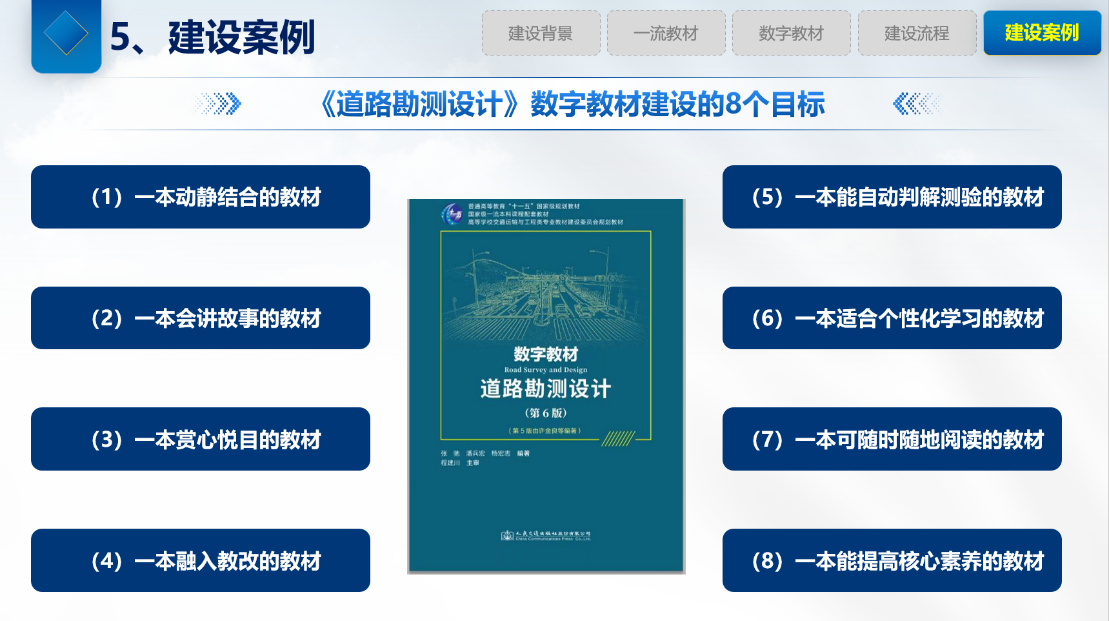 在专题报告环节,张驰教授重点介绍了学院新设立的茅以升班课程体系建设情况,并详细分享了《道路勘测设计》数字化教材的建设成果。他从教材编纂历程、内容架构、特色优势以及应用方法等维度进行了全面讲解,为与会教师提供了宝贵的数字化教学资源建设经验。