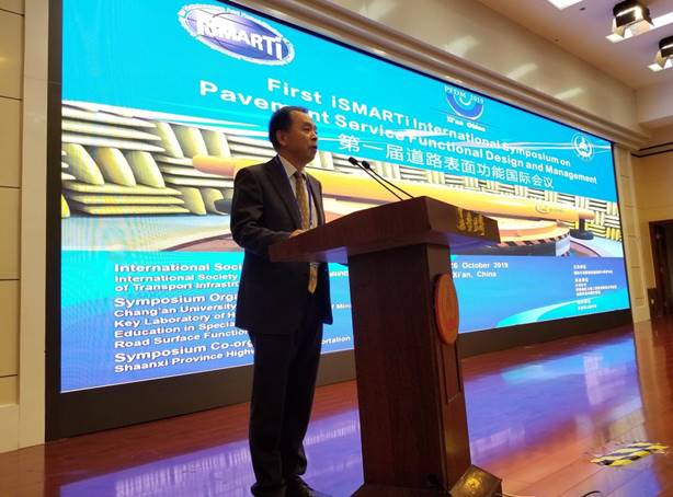 From October 24 to 26, the 1st iSMARTi International Symposium on Pavement Service Functional Design and Management, PFDM Symposium 2019, sponsored by Changan University and jointly organized by the Shaanxi Provincial Highway Society, was grandly held at the Academic Exchange Center of Changan University. The theme of this conference is "Pavement Service Function Design and Management", which mainly involves the latest research results of pavement anti-skid safety, noise reduction, comfort, surface texture characteristics, etc.. More than 260 well-known scholars and professionals from 16 countries and regions including China, Portugal, the United States, the United Kingdom, Canada, Sweden, the Netherlands, Italy, Greece, Singapore, Japan, Australia, New Zealand, Hong Kong, Taiwan, and Malaysia participated in the event. Xue Sheng Gaozheng Senior Engineer, Deputy Director of Shaanxi Provincial Department of Transportation, Niu Sishengzheng Senior Engineer, Chief Engineer of Gansu Provincial Department of Transportation, and leaders of relevant departments of School and College were also invited to attend the opening ceremony.