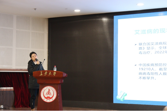于敏向师生开展艾滋相关知识讲座
