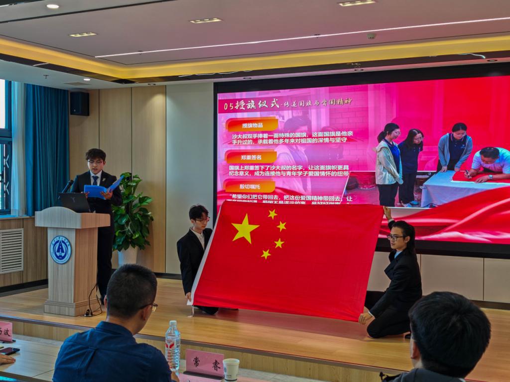 赴新疆塔城、乌鲁木齐“‘志’赴西疆·承启新章”暑期社会实践队的贾则楠同学深情讲述了《小院擎旗,心向祖国:沙大叔与一面国旗的深情守望》,他生动还原了沙勒克江·依明大叔的感人事迹。队员们在一场特殊的升旗仪式中深刻体会到:爱国,不仅是书本上的文字,更是五星红旗升起时那份滚烫的心跳与深沉的共鸣。