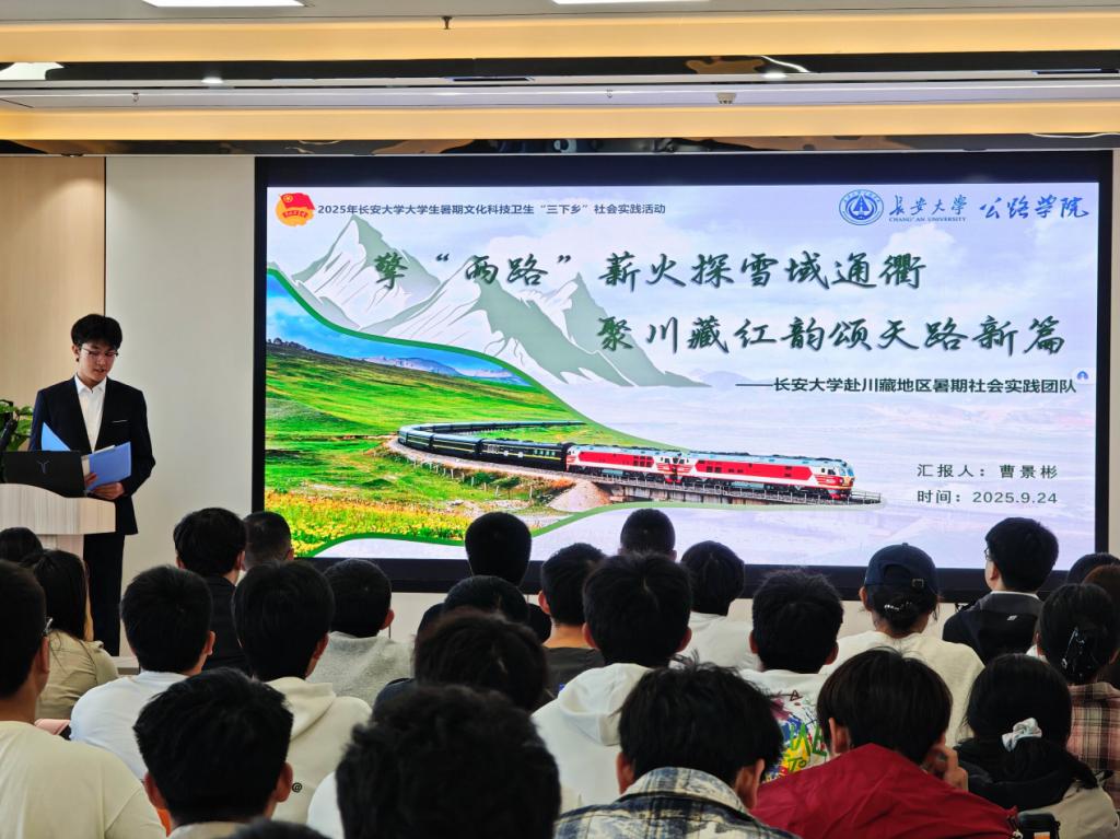 赴川藏地区“擎两路薪火探雪域通衢·聚川藏红韵颂天路新篇”暑期社会实践队曹景彬同学分享了重走川藏公路、解码“两路”精神的难忘经历。“两路”实践队赴成都、泸定、林芝、拉萨等地开展实践调研,围绕“两路”精神溯源、交通变迁见证、精神传承与弘扬三大主线,通过实地调研、人物访谈、与校友单位交流等多种形式开展实践,以青春之名践行使命担当,续写新时代“两路”新篇章。