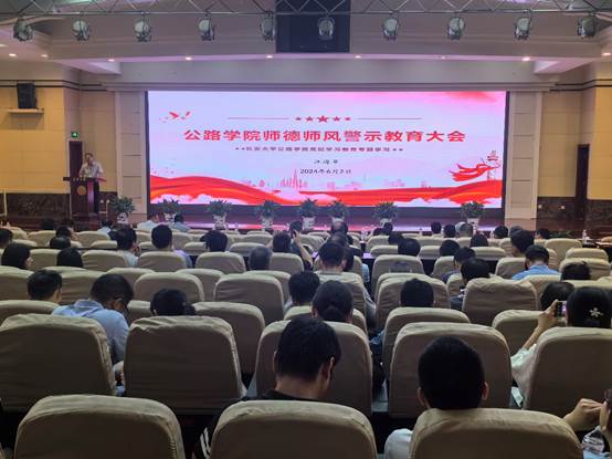 在南校区北院学术交流中心报告厅召开师德师风警示教育大会,进行师德师风警示教育。会议由学院党委副书记刘徐主持。