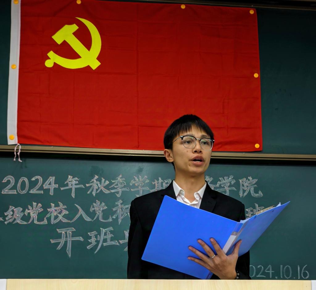 副班主任刘亦澜宣读了本期入党积极分子培训班教学计划、班级构成、学员考核标准和学习纪律,并鼓励学员珍惜党课学习机会,努力做到学有所思、学有所成、学以致用。