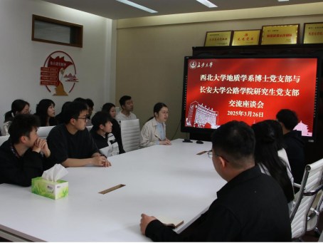 “道桥岩隧”党支部,硕2308、2409、2417党支部成员与西北大学地质学系博士党支部在南校区北院伦理影片