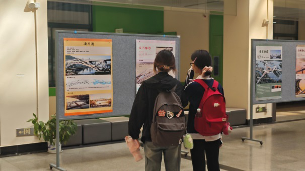 本次展览聚焦2022—2025年赛事获奖成果,精选29件优秀作品集中亮相。展览以高清效果图、设计图纸、创作理念与技术说明为载体,系统呈现长大桥梁学子在结构创新、造型美学、工程实用、绿色低碳等方面的探索与突破。一件件匠心之作,既展现了扎实的专业功底与前沿的设计思维,也传递出“交通强国、桥梁报国”的青年担当,让观展师生沉浸式感受桥梁工程的科技之美、人文之美与匠心之美。