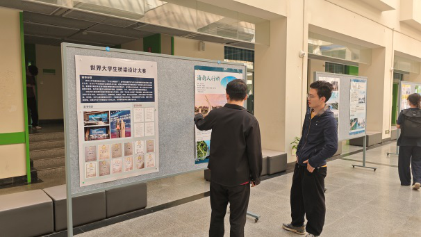 桥梁工程系第二党支部在渭水校区修远教学楼二区一楼大厅,举办世界大学生桥梁设计大赛精选作品展。