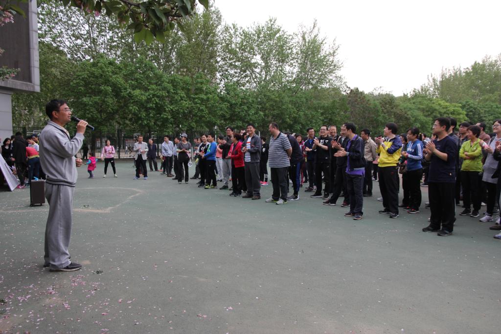 为全面落实《全民健身计划2016-2020》,以形成健康的工作生活方式为重点,以增强全院教职工的身心健康为核心,推崇“运动是良医”的健身理念,为学院全体教职工在争创“双一流”大学进程中奠定良好的体质和愉悦的心态,全面推进学院健康运动的深入开展,增强教职工的身体素质和凝聚力,在院党委领导下,院工会组织全院200多名教职工于2017年4月15日在校本部体育场开展全员健身运动日活动,校工会主席简林莎教授出席开幕式并讲话。